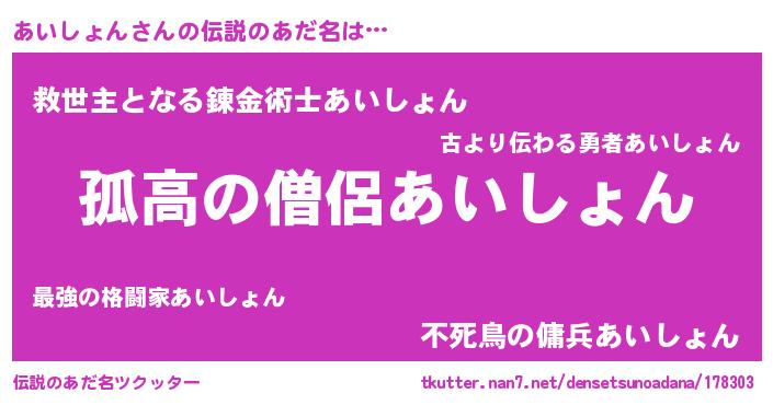| 男性向けラノベタイトル風あだ名 | 『アイションスレイヤー』 |