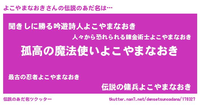 | 意味不明あだ名 | 『住所不定無職よこやまなおき(2歳)』 |