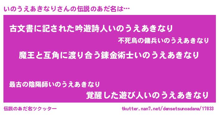 | ヘコむあだ名 | 『いのうえあきなり(震え声)』『いのっ子』 |