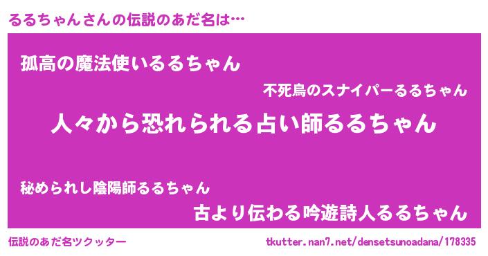 | ヒーロー風カッコイイあだ名 | 『正義の使者るるちゃん』『暗黒騎士ルル』 |
