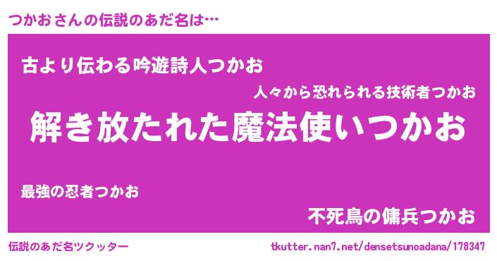 | 意味不明あだ名 | 『とにかく怪しいつかお』『自称つかお』 |