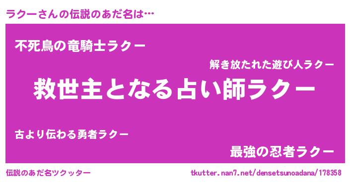 | ヒーロー風カッコイイあだ名 | 『究極戦士ラクー』『愛の使者ラクー』 |