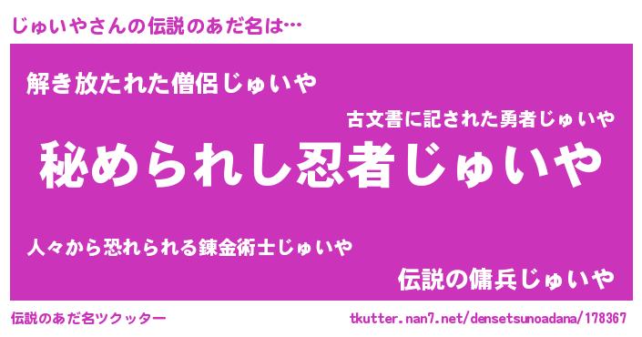 | ヒーロー風カッコイイあだ名 | 『ウルトラじゅいやマン』『銀牙騎士ジュ』 |