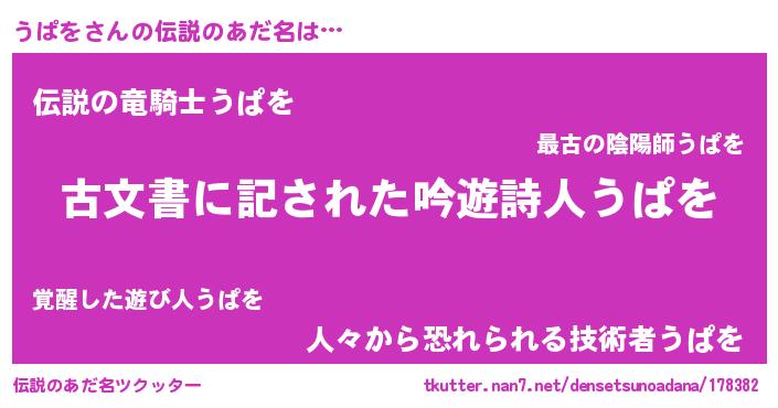 | 女子向けラノベタイトル風あだ名 | 『うぱをストレイドッグス』 |