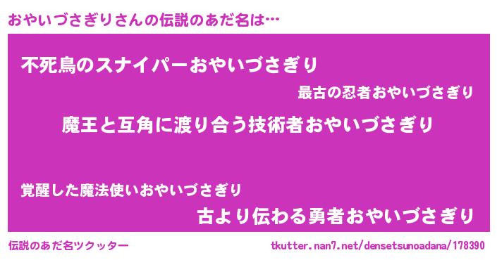 | 意味不明あだ名 | 『眠気覚ましガムおやいづさぎり味』 |