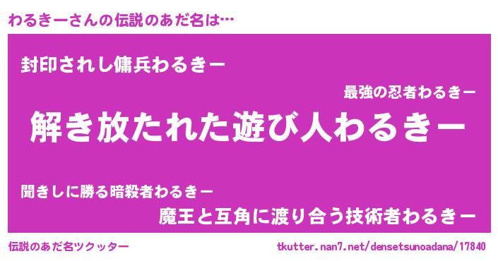 | 女子向けラノベタイトル風あだ名 | 『わるきーの卵を拾いまして』 |