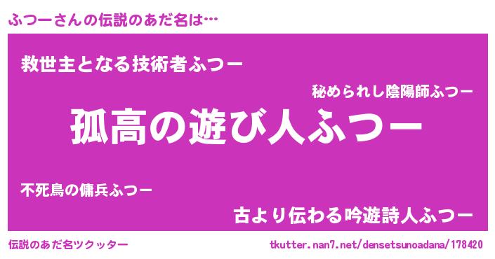 | 意味不明あだ名 | 『とにかく怪しいふつー』 |