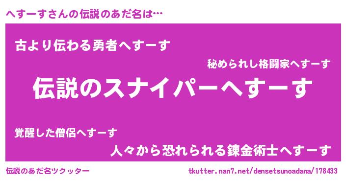 | 胡散臭い通販商品みたいなあだ名 | 『必ず成功する霊験あらたかなお札…その名も「へすーす」』 |