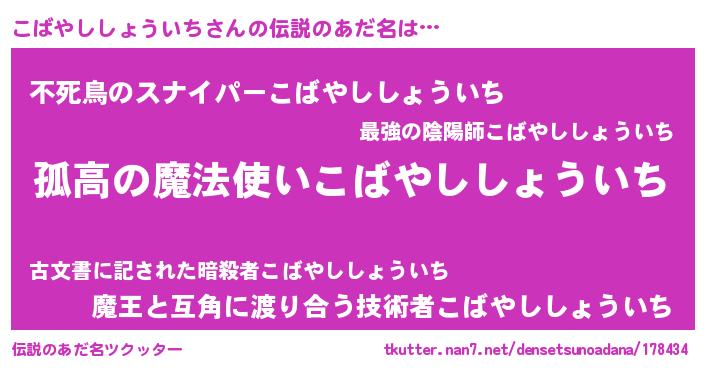 | 男性向けラノベタイトル風あだ名 | 『ダンジョンにこばやししょういちを求めるのは間違っているだろうか』 |