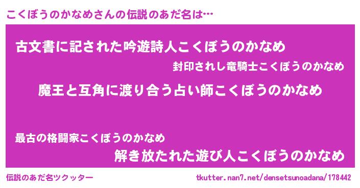 | 女子向けラノベタイトル風あだ名 | 『こくぼうのかなめ恋絵巻』 |