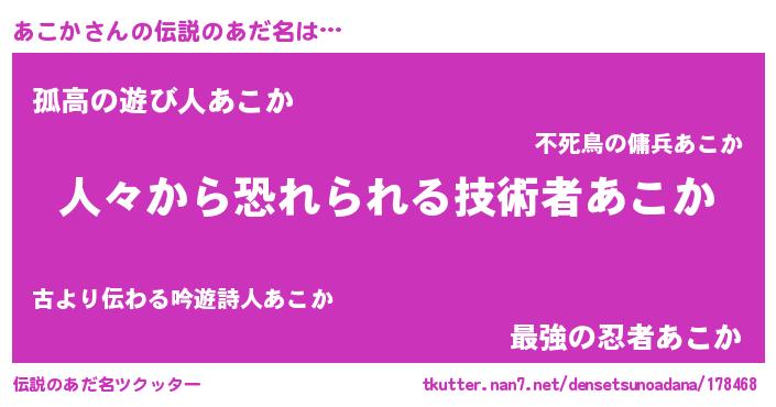 | ヒーロー風カッコイイあだ名 | 『友情の使者あこか』『暗黒騎士アコ』 |