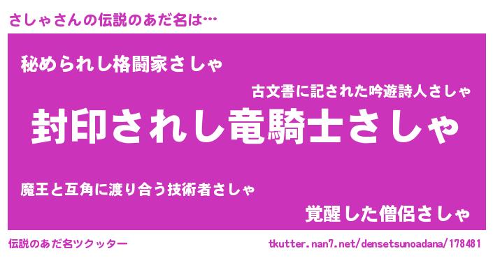 | 男性向けラノベタイトル風あだ名 | 『サシャアートオンライン』 |