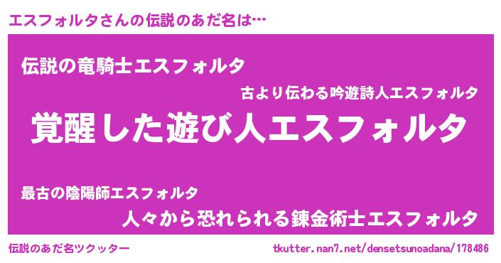 | 胡散臭い通販商品みたいなあだ名 | 『あなたにだけ特別に提供する世界で10本だけ現存している希少なブランデー…その名も「エスフォルタ」』 |