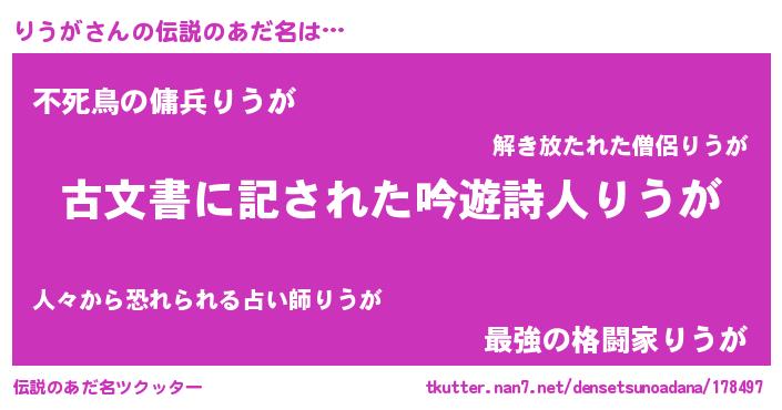 | 欧米人風あだ名 | 『ダルビッシュりうが』『マイケルりうが』 |