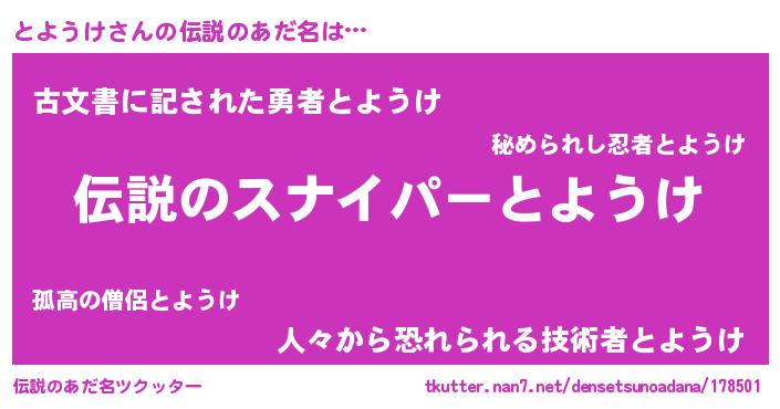 | 胡散臭い通販商品みたいなあだ名 | 『必ず成功する霊験あらたかなお札…その名も「とようけ」』 |