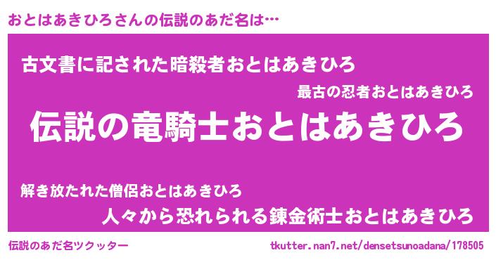 | 意味不明あだ名 | 『住所不定無職おとはあきひろ(3歳)』 |