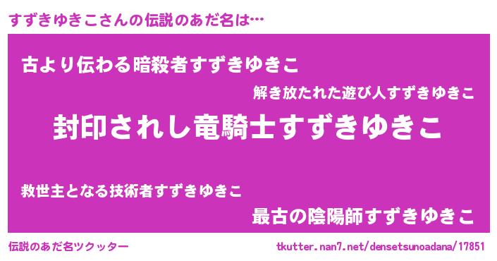 | ヒーロー風カッコイイあだ名 | 『スーパースズキユキコ』『銀牙騎士スズ』 |