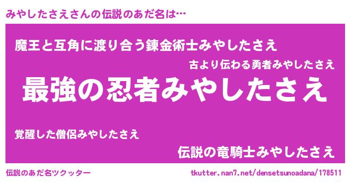 | ヒーロー風カッコイイあだ名 | 『ウルトラみやしたさえマン』 |