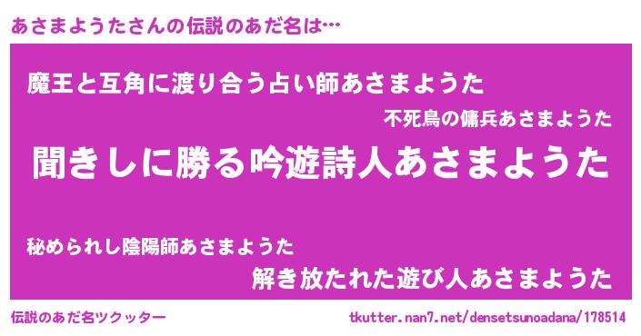 | 意味不明あだ名 | 『永久保存あさまようた』 |