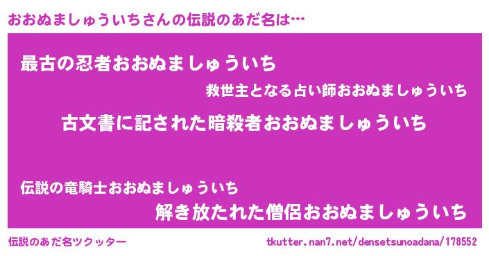 意味不明あだ名 | 『永久保存おおぬましゅういち』 |