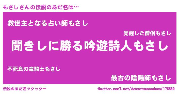 | 意味不明あだ名 | 『自称もさし』『永久保存もさし』 |