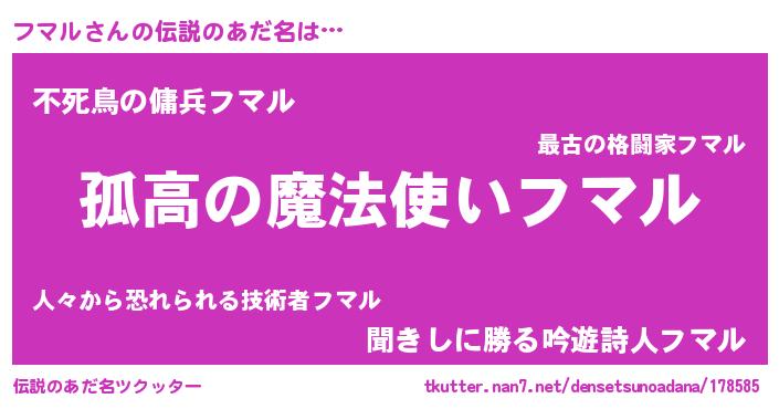 | 女子向けラノベタイトル風あだ名 | 『フマルは平凡を望む』 |