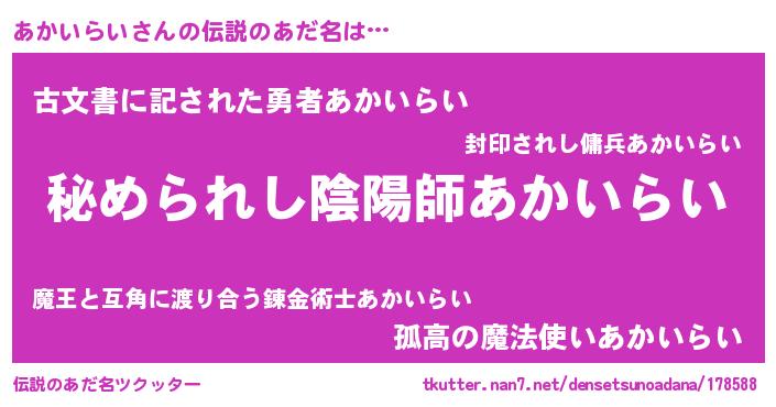| 意味不明あだ名 | 『住所不定無職あかいらい(86歳)』 |
