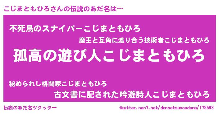 | 意味不明あだ名 | 『とにかく怪しいこじまともひろ』 |
