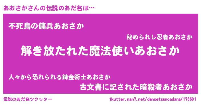 | 意味不明あだ名 | 『とにかく怪しいあおさか』 |