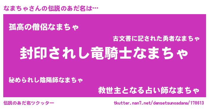 | ヒーロー風カッコイイあだ名 | 『スーパーナマチャ』『黄金騎士ナマ』 |