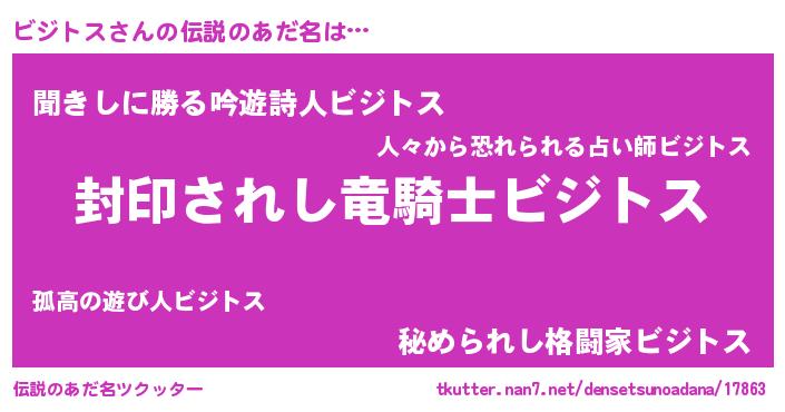 | 男性向けラノベタイトル風あだ名 | 『ビジトスアートオンライン』 |