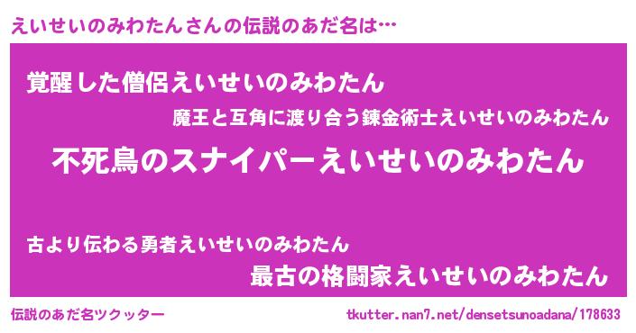 | ヒーロー風カッコイイあだ名 | 『サイバー戦士エイセイノミワタン』 |