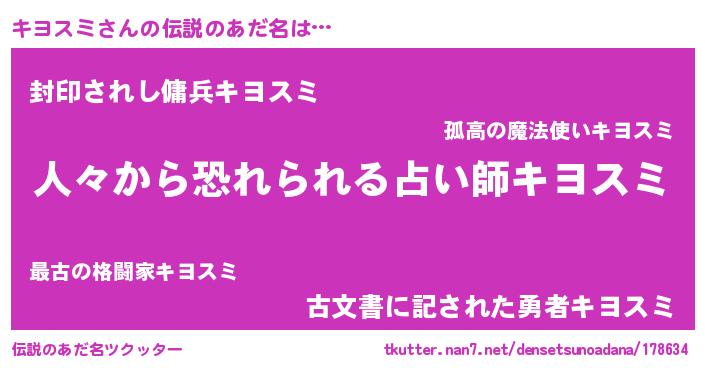 | ヒーロー風カッコイイあだ名 | 『友情の使者キヨスミ』『仮面キヨダー』 |