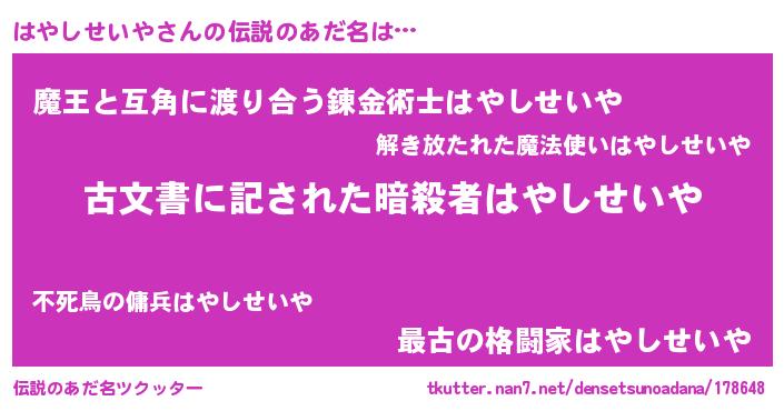 | 意味不明あだ名 | 『永久保存はやしせいや』 |