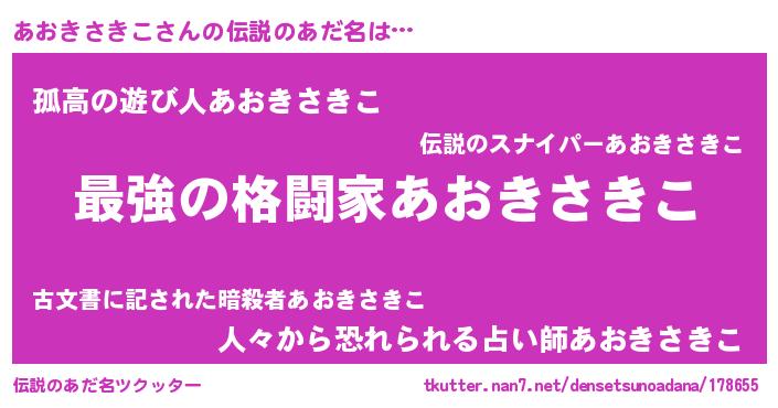 | 意味不明あだ名 | 『住所不定無職あおきさきこ(1歳)』 |
