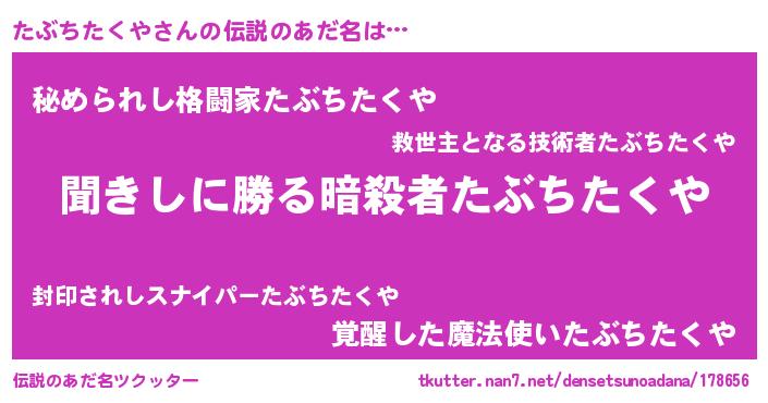 | ヘコむあだ名 | 『たぶちたくや(笑)』『つくし』 |