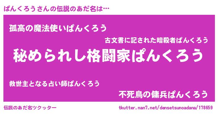 | 意味不明あだ名 | 『ぱんくろうフォーエバー』 |