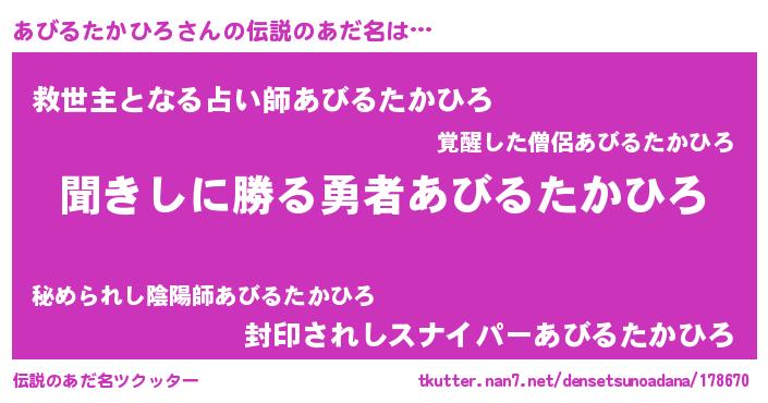 | 意味不明あだ名 | 『永久保存あびるたかひろ』 |