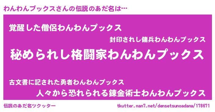 | 意味不明あだ名 | 『住所不定無職わんわんプックス(6歳)』 |