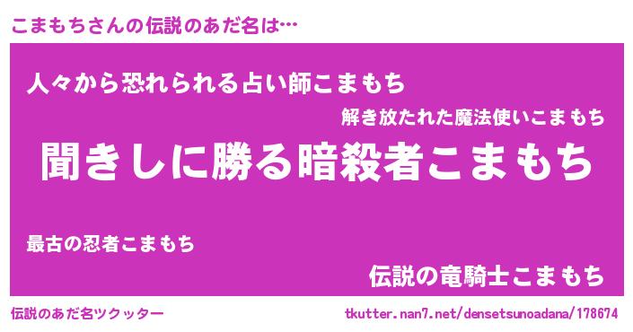 | ヘコむあだ名 | 『こまもち(笑)』『こまもー』『豆乳』 |