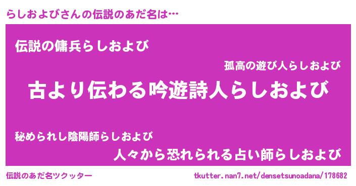 | 意味不明あだ名 | 『自称らしおよび』『永久保存らしおよび』 |