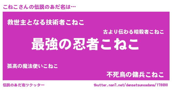 | ファンタジー風あだ名 | 『エターナルコネコー』『カークコネラー』 |