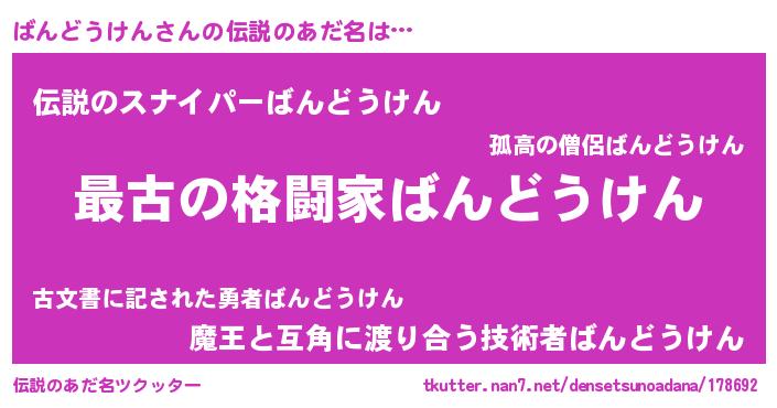 | 意味不明あだ名 | 『ばんどうけんフォーエバー』 |