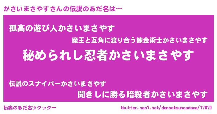 | ファンタジー風あだ名 | 『エターナルカサイマサヤスー』 |