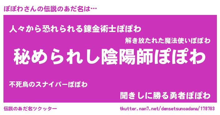 | 男性向けラノベタイトル風あだ名 | 『ポポワスレイヤー』 |
