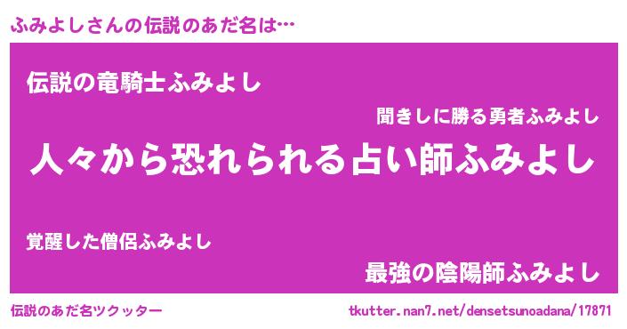 | ヒーロー風カッコイイあだ名 | 『正義の使者ふみよし』『仮面フミダー』 |
