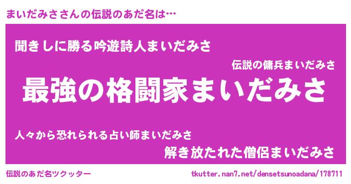 | 女子向けラノベタイトル風あだ名 | 『まいだみさの婚約者』『闇のまいだみさ』 |