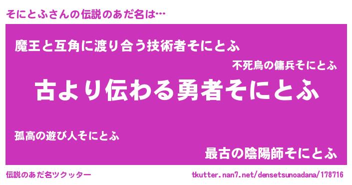 | 意味不明あだ名 | 『永久保存そにとふ』『自称そにとふ』 |