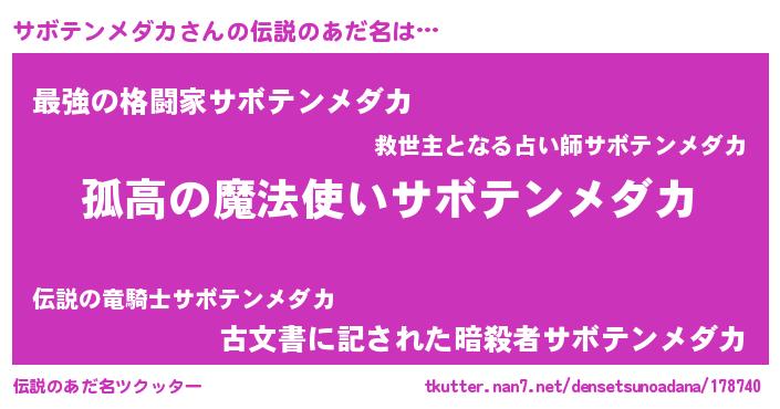 | ヒーロー風カッコイイあだ名 | 『暗黒騎士サボ』『ネオサボテンメダカ』 |