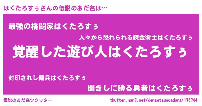 | 意味不明あだ名 | 『とにかく怪しいはくたろすぅ』 |